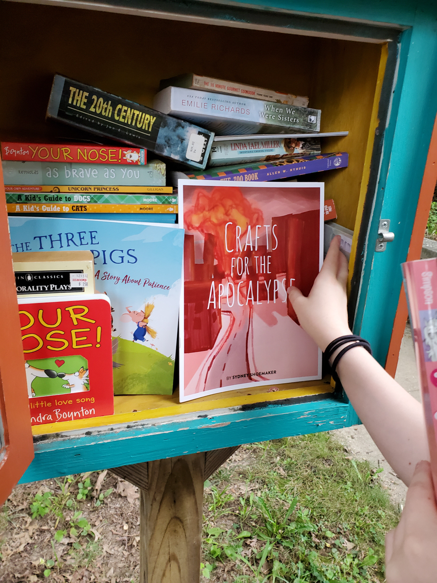 Syd still wanted to give out *some* copies, though, so she decided to have a few copies printed and drop them off in Little Free Libraries around town. She wrote a budget proposal and presented it to our Girl Scout troop for the funds, then emailed back and forth with a local printing company to get her order made.