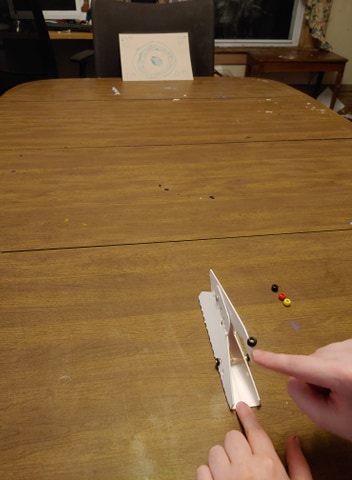 Harold learned that if you just pull it back slightly, the beads won't go flying over the target. In fact, he was a lot closer to hitting it.