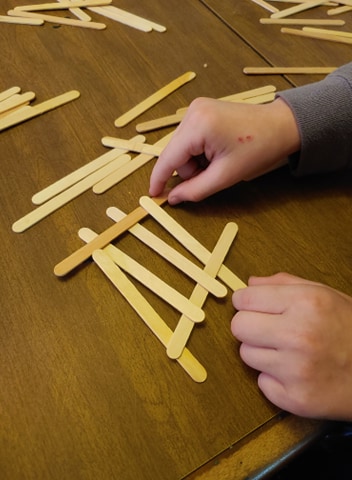 I have encouraged the children to try on other days to see if they can improve. Unfortunately, we still can't get past the 13-stick bridge, definitely nowhere near the 30 sticks mentioned in the chart. Thankfully this is an activity we can try again and again, as we get to reuse the sticks.