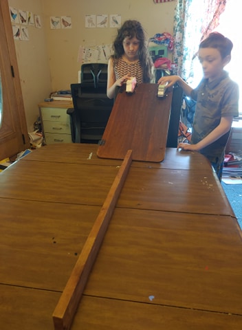I was able to convince Tabitha to help out for this one, the one that required the least materials (well, besides the bridges).
