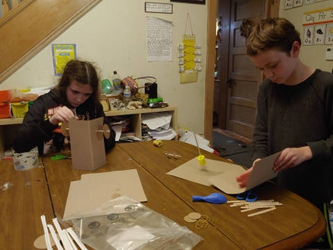 With this activity there were actually a couple of invention ideas given, but no instructions on how to make them. So, both Amelia and Harold chose to try out the elevator.