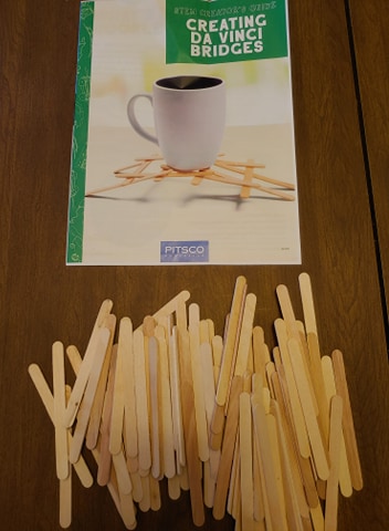 With this STEM activity, we were working on building bridges with craft sticks. Yep, just craft sticks. Pitsco Education provided a bunch of them.