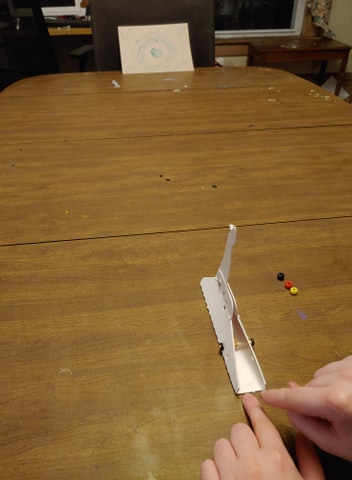 We tried the ramp out in different positions to see how far the cars would travel, plus added varying amounts of clay to the car to see if it changed the distance they would travel. Unfortunately we weren't getting consistent results, so I didn't end up recording them in the charts in the guide.