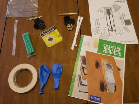 Some of the pictured materials are used in the activities after the vehicle is completed. Plus, we needed to have something to use as a stopwatch.