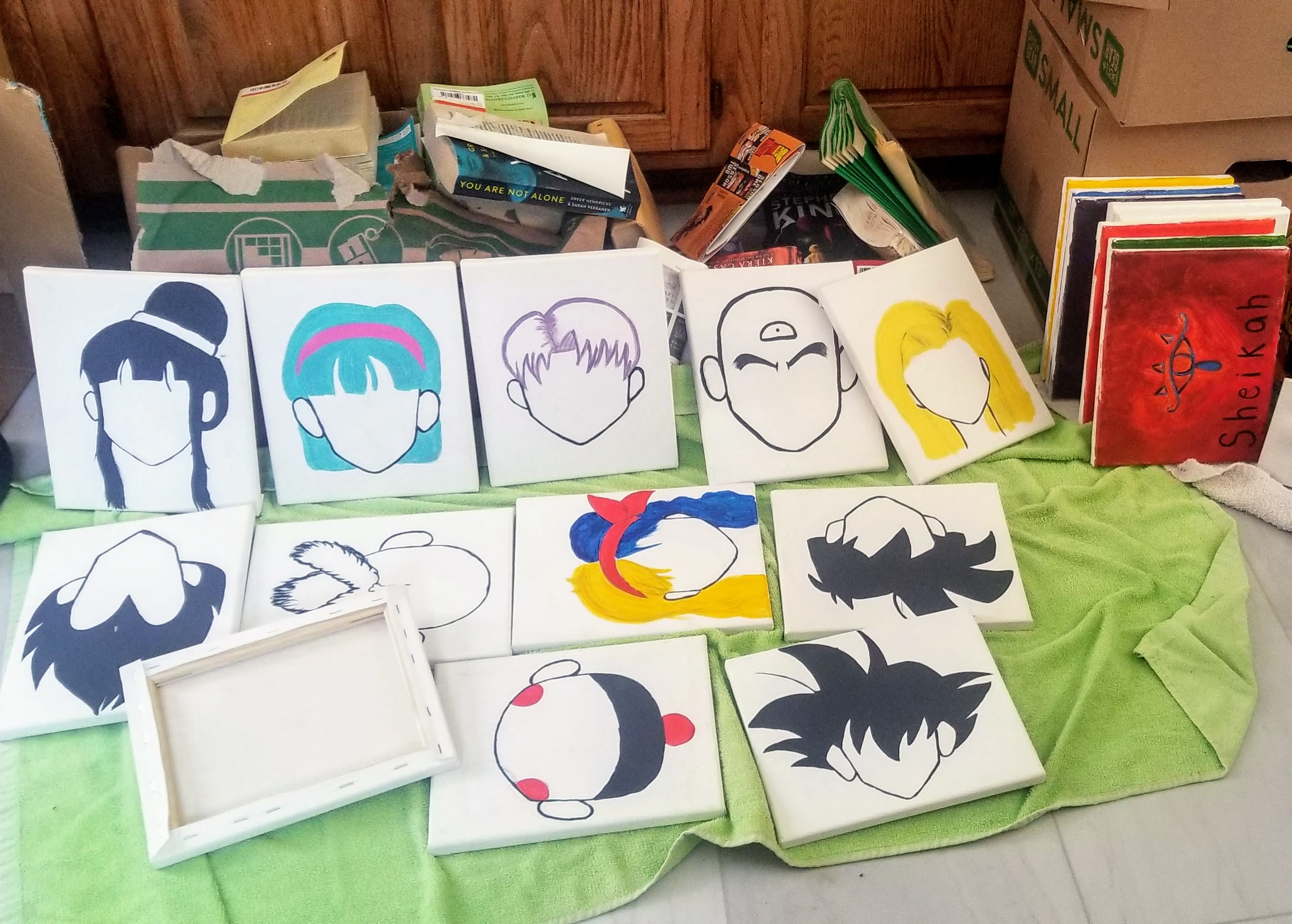 - dear - My original idea for this prompt was to take a photo of stationery as I did have a couple of letters I was going to write this week. Well, I haven't written them yet. But I do have this photo of a collection of paintings of Meaghan's that were just the tiniest bit damp, so they are drying out. The artwork is very dear to her, so I'm beyond relieved that none of these were damaged!