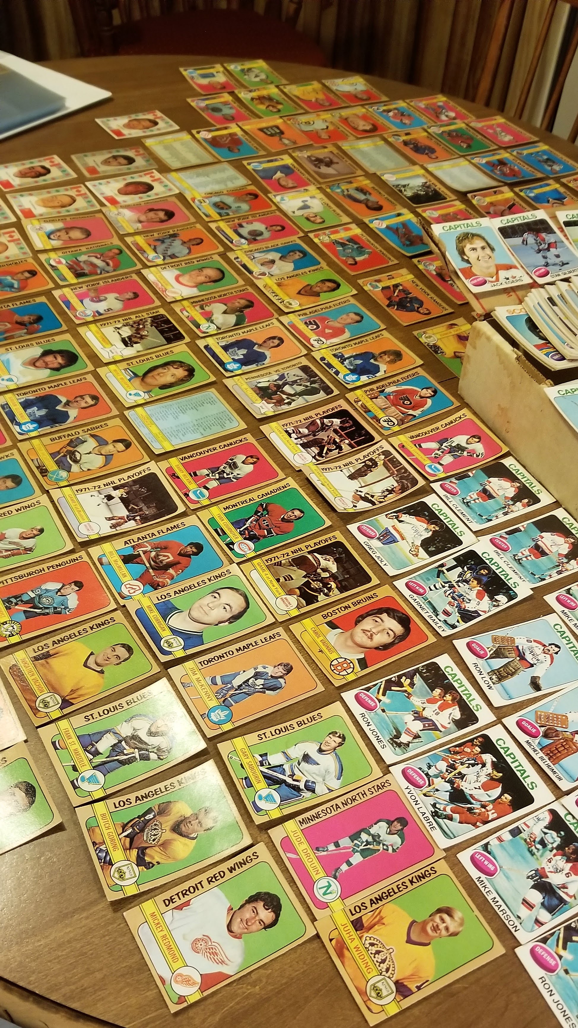 - your choice - These are some of my husband's most valued hockey cards. Again, just the tiniest bit of dampness, but they needed to be removed from the plastic sleeves and laid out to dry. I thoroughly covered the dining room table with this project in what looked like a giant game of Memory.