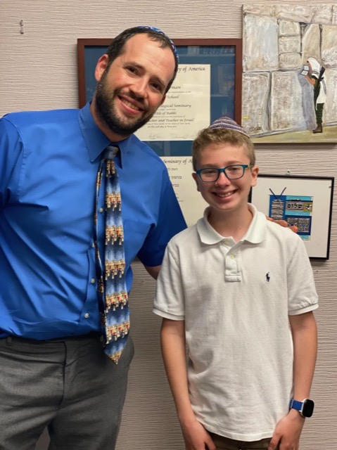 MR: Let’s turn to your Bar Mitzvah, which will take place on January 6th. (Here’s Ethan, pictured with Rabbi Herman). Can you tell us about your Bar Mitzvah Project? Spoiler alert: It involves books