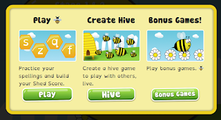 There are several games available in Spelling Shed for students to play: Play, Create Hive, Bee Keeper and Missing Word. In Play, students practice spelling a list of words while being timed. In easier levels, students are given the letters needed to choose from and place in order.
