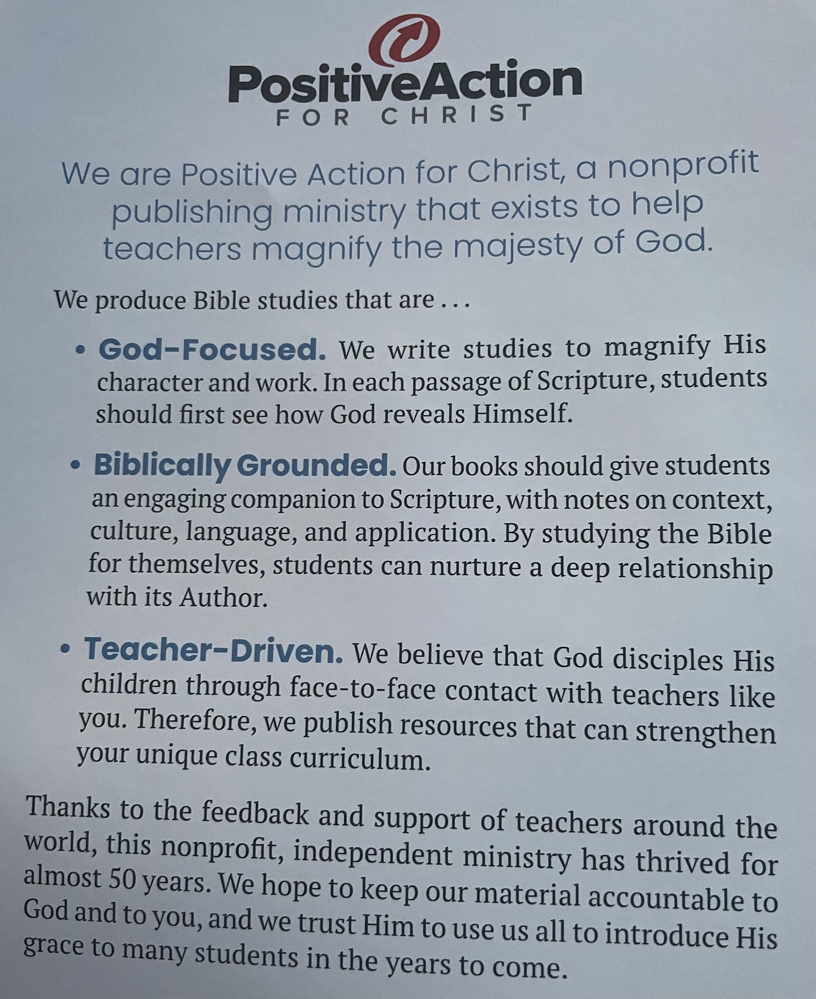 Find Positive Action Bible Curriculum on Social Media:
