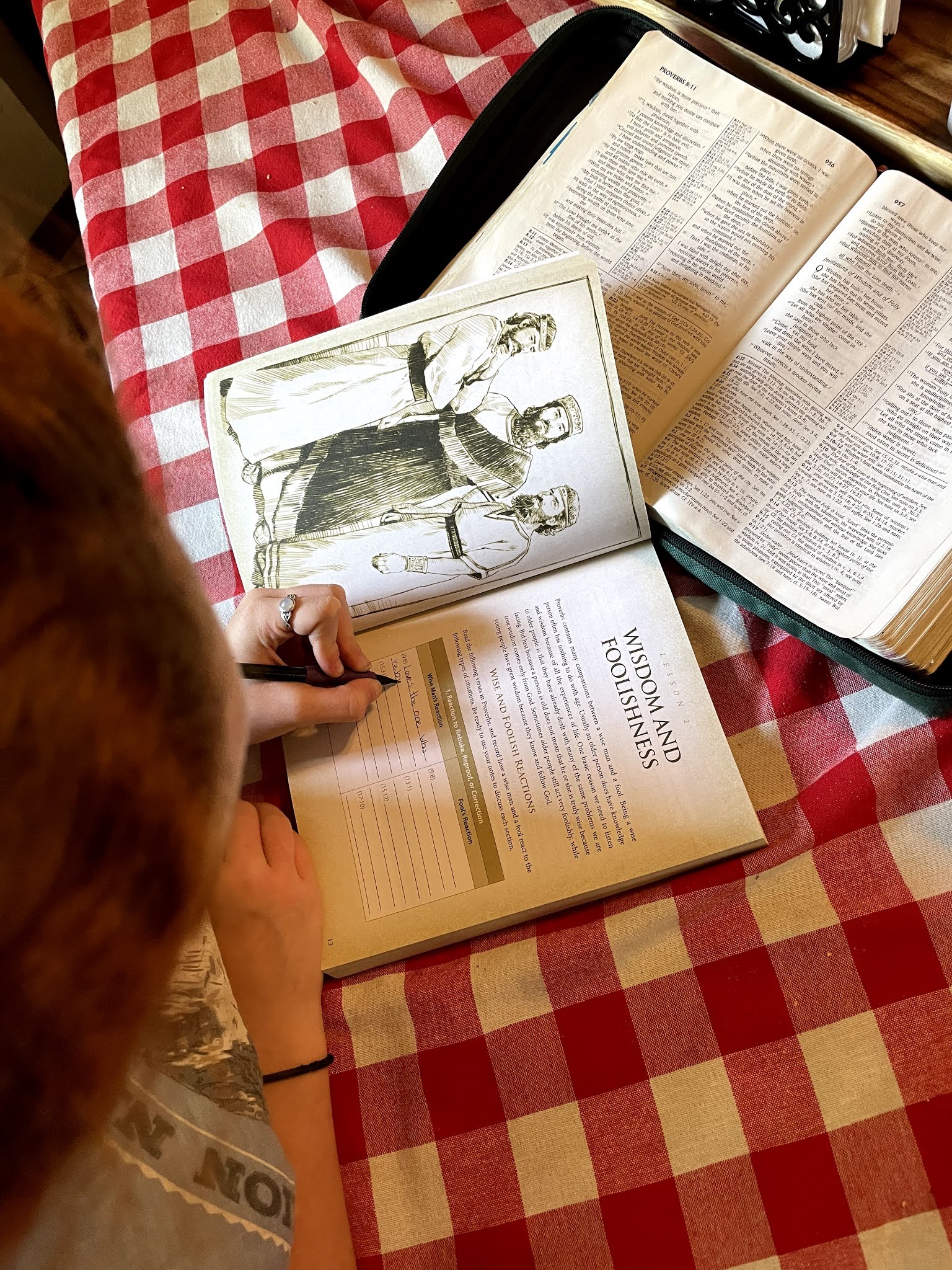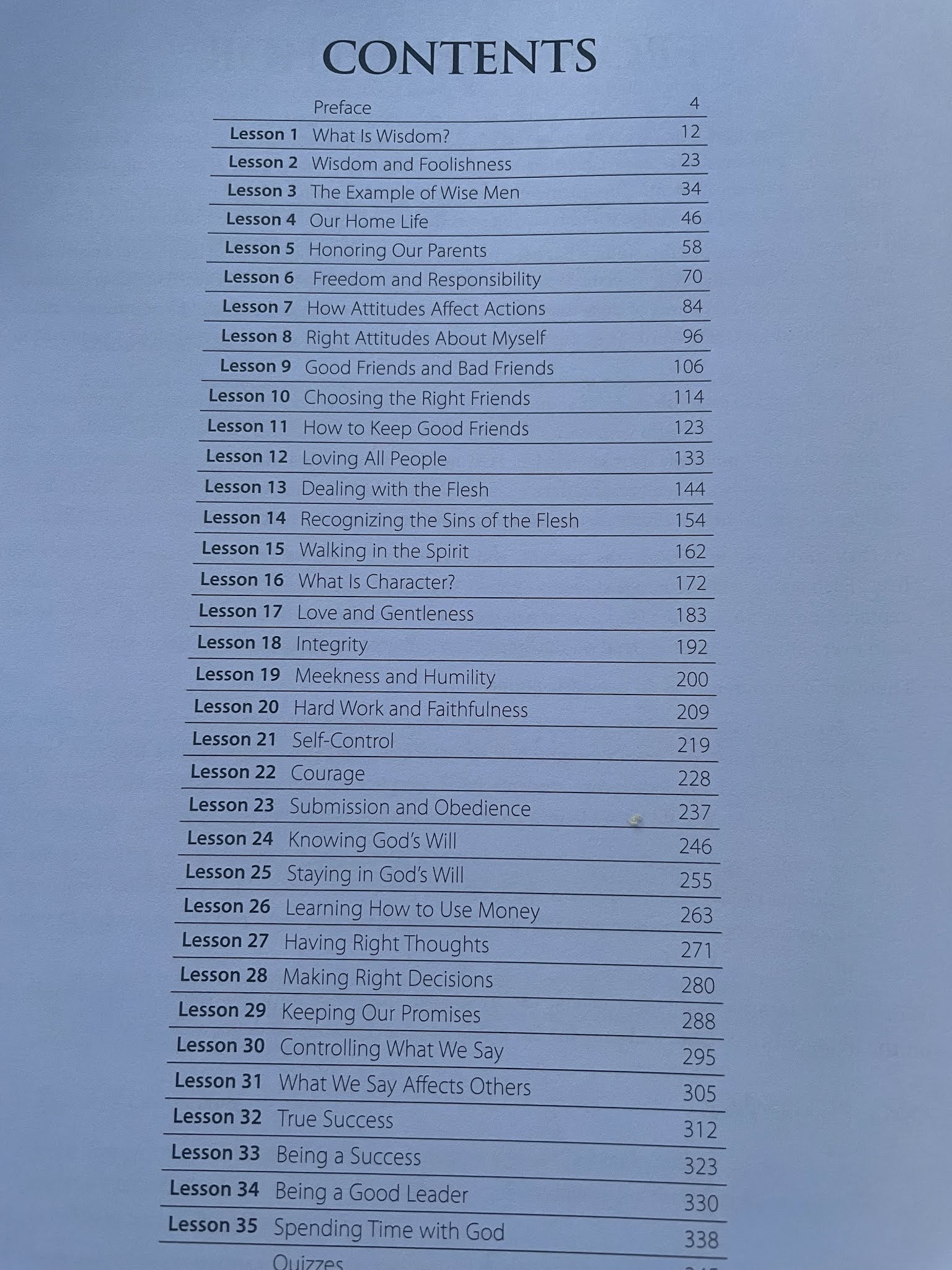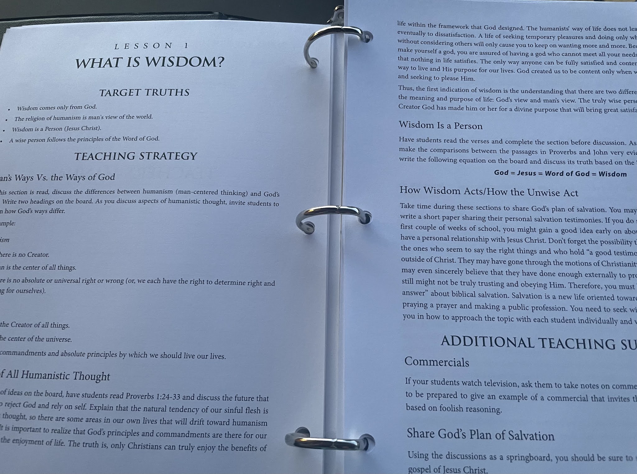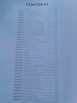 It comes with both a softcover Student Manual and a 3 Ring Binder Teacher Manual. It is broken into 35 lessons. The aim of this curriculum is to create a "God Focus" in your children as you teach them to discern between wisdom and knowledge from the ultimate book of wisdom - Proverbs.