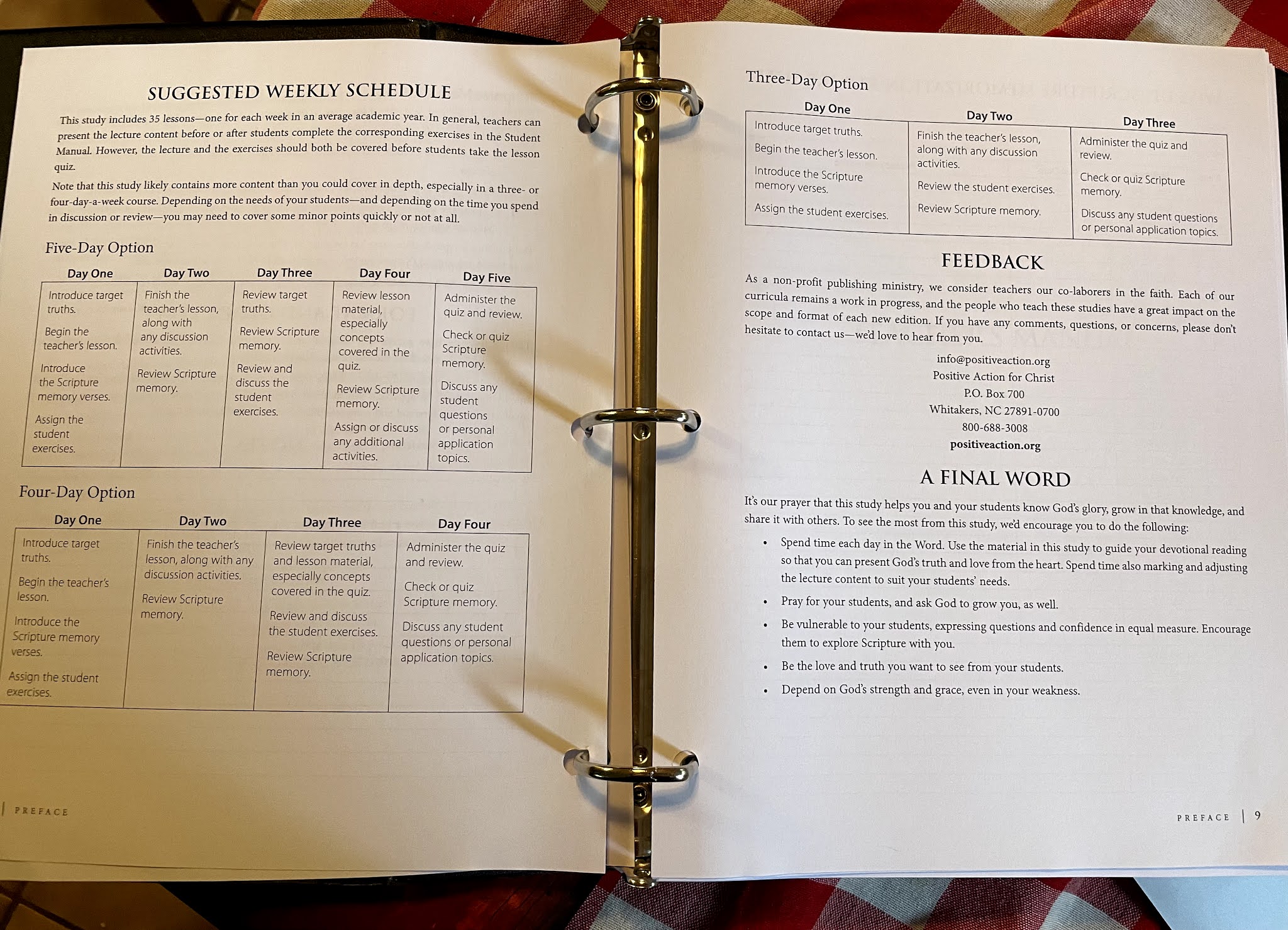 The Teacher's Manual includes a handy chart to help you schedule lessons on either a 3, 4, or 5 day schedule, making it a full year study!