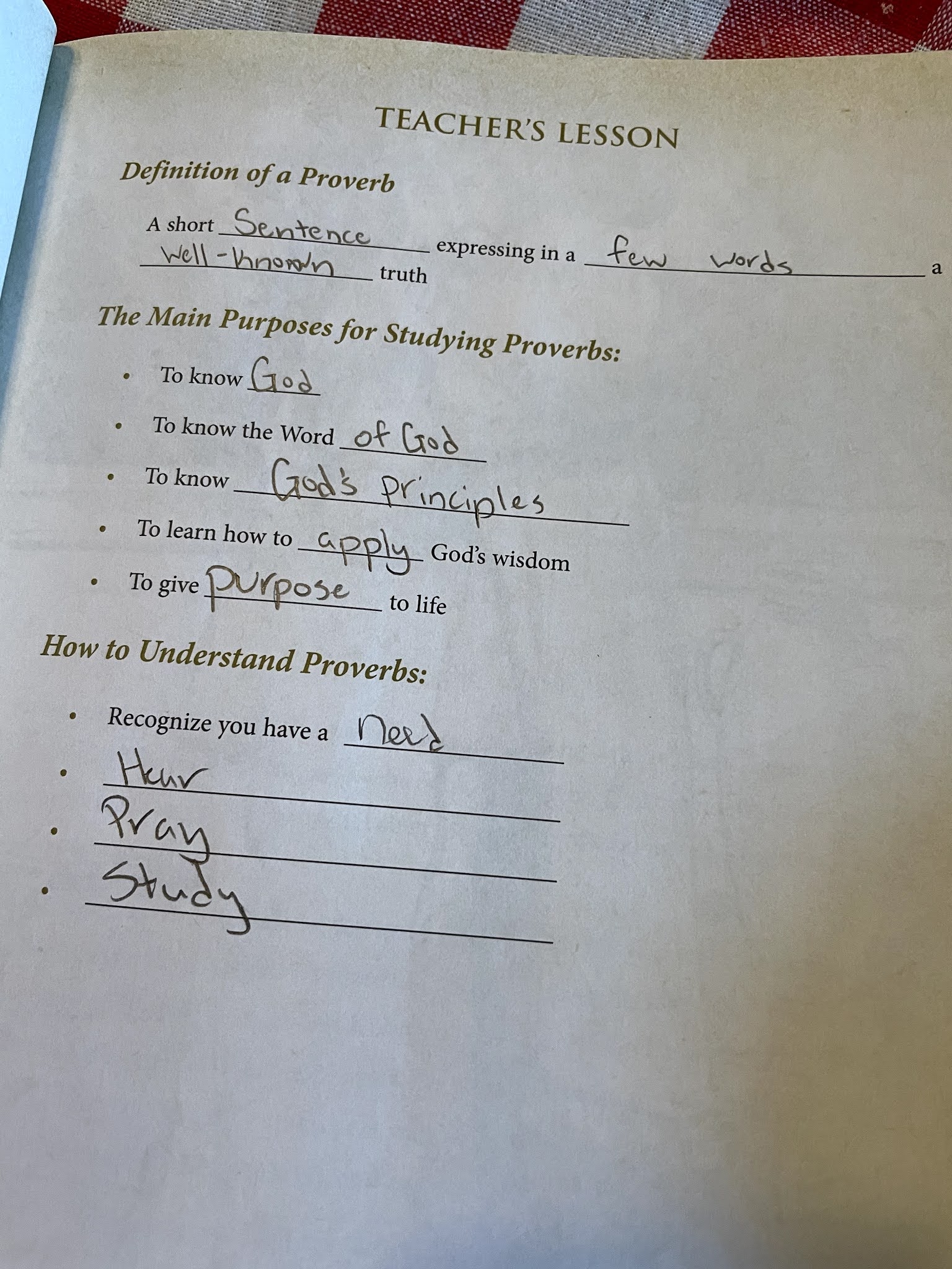 The end of each lesson includes a fill-in-the-blank section for the student to take notes from the Teacher's Lesson.