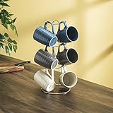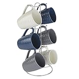 Home Basics - Mugs have a unique design with a cool textured finisheach set includes 2 navy mugs 2 gray mugs and 2 white mugs Made from high quality ceramic wont chip or break easily and will keep your beverage nice and hot Perfect present idea this holiday season surprise your friends family coworkers etc They will love this set all year long This home basics 6 cup mug tree is adds a fun way to organize and display your mugs stylishly and decoratively