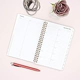 unique design the high quality hardcover of this 2021 planner has soft tactility and the strong metal and layflat spiral binding gives this planner a vibrant look to light up your day Moreover the back pocket can keep your loose items like plane tickets cards papers and more
