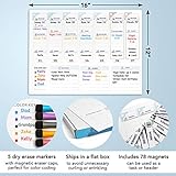 CHART TO FINISH - We stand behind our products let us know if you have any issue with your magnetic weekly planner and we will make it right Packed with accessories this chart comes with 78 fridge planner magnets to organize your dry erase weekly planner 5 premium fine tip magnetic dry erase markers with eraser caps plus 1 storage bag Simple design our minimalist design is free of logos the daily layout has a different color for the week and weekend a color key blank sections at the bottom for a grocery list meal planning notes about your schedule or week and more