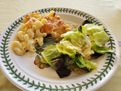 Today was a beautiful day, in the 70's and it was time to take the covers off the patio furniture, as well a few cleaning projects. As I get to the end of the week, my enthusiasm for cooking kind of hits a wall; I'm a little tired of eating my own food, and I'm not really enthused about any of our take out options. So, tonight, I finally decided that Mac and Cheese was going to be our dinner. It's not really the Mac and Cheese that is key here, it's the salad, which balances the creamy cheesy mac. So, let's get to it.
