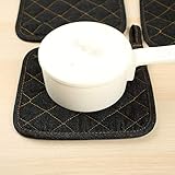 Fabric easy storage hot pads are quilted with 100 cotton to protect your fingers from getting burned by oven or hot pads and allows for flexible grip for this pot holder Hanging loop is available for easy storage After sale service 30 days free return or full refund from the date of purchase if our hot pads have quality problem if you have any questions or suggestions please feel free to contact