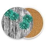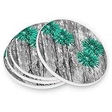 Rustic Theme Teal Flowers Ceramic Coasters for Drinks,Round 4 Piece Coaster Set
