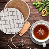 DOOMIC Set of 6 Absorbent Stone Coasters with Cork Back,Ceramic Drink coasters Set,Grey Lines